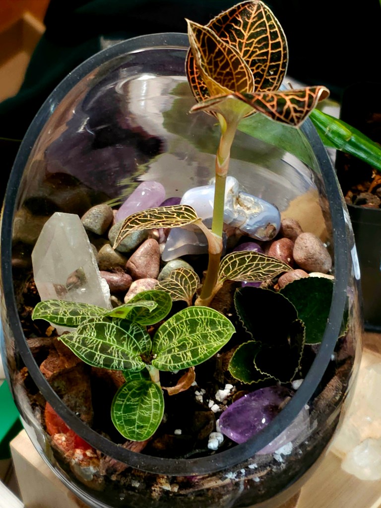 Students learn the soil requirements and plant selections needed to create a thriving open terrarium. This hands-on session explores how to layer soil for proper drainage, choose suitable plants for open environments, and design a balanced miniature ecosystem. All plants and soil will be provided. Participants should bring a clean glass container large enough for a hand to fit inside, along with any rocks or crystals to personalize their creation.